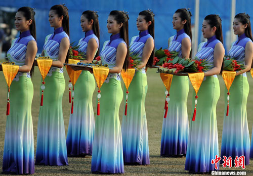 本屆亞運會,除開選手們的精彩表現(xiàn),禮儀小姐的靚麗身影必將成為人們回憶盛會的一大亮點。禮服名為“行云流水”,人有何嘗不是如此?