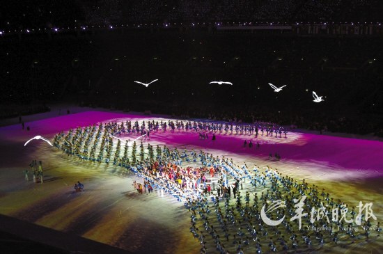 另外,開幕式的空中表演將會是亮點。據(jù)介紹,這次所用的“威亞”(金屬吊線),是亞運會開幕式的五倍以上,絢麗燈光將在很多重頭表演中展現(xiàn)。解放軍某部官兵800人將組成西關(guān)窗花,展現(xiàn)廣州亞殘運會會徽中的精美圖案。