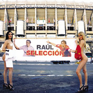 3月28日,西班牙國家隊將與土耳其隊進行一場較量,博斯克會征召勞爾嗎?西班牙媒體的民意調(diào)查顯示,西班牙75%的球迷都支持勞爾重返國家隊,有球迷建立了支持勞爾重披國家隊球衣的網(wǎng)站,還有兩位巴西女球迷,干脆身著性感裝扮在伯納烏球場外舉起標(biāo)語牌,強烈要求博斯克將勞爾招入國家隊。