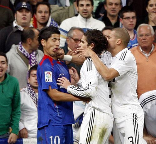 除了在第87分鐘對(duì)卡斯特羅犯規(guī),令皇馬被判點(diǎn)球之外,佩佩還惱羞成怒的踢躺在地上的對(duì)手,被主裁判紅牌罰下。他的這一不理智舉動(dòng)引發(fā)了雙方球員沖突,在混戰(zhàn)中,佩佩一記重拳擊中卡斯特羅面部。場(chǎng)外的攝影記者捕捉到了這丑陋的一幕。
