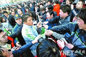 昨天上午9點(diǎn),新賽季國安主場比賽套票在工人體育場正式發(fā)售。重回福地工體讓京城球迷的熱情重新迸發(fā),工體和國安在北京城的人氣也開始重新凝聚。而國安一線隊(duì)隊(duì)員到場與北京球迷見面引發(fā)的效應(yīng)更加驚人:8000張?zhí)灼币惶熘畠?nèi)全部售完,國安俱樂部不得不考慮再加印2000套,以滿足球迷的需求。