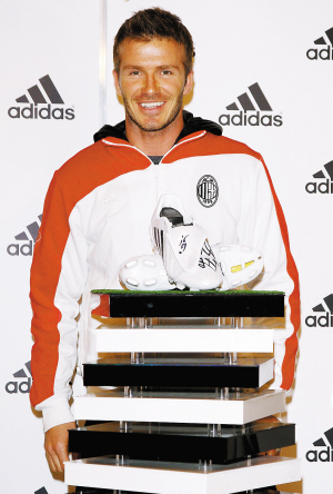 而前天,小貝這個體壇最勤奮的售貨員又出現(xiàn)在了米蘭的一個運動品專賣店內(nèi),依然是酷酷的造型,職業(yè)性的微笑,不過這回不賣內(nèi)褲,改賣足球鞋了,但照樣有上千人前來捧場,真不知道,小貝下一步是不是要賣襪子了?