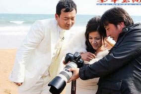 為了排遣等待天晴的無聊時(shí)間,張娟娟聽取了店里工作人員的建議,趁機(jī)挑選婚禮服。雖然口口聲聲地說被前一天的拍攝累壞了,但是一看到為自己準(zhǔn)備好的極品婚紗,張娟娟又興奮地進(jìn)入了試衣間,而她的老公薛海峰照舊老老實(shí)實(shí)坐在沙發(fā)上等待!疤膳铝耍 背弥鴱埦昃耆Q另一套衣服,被老婆的N套華麗裙裝轟炸得暈頭轉(zhuǎn)向的薛海峰悄悄地對記者說:“我已經(jīng)審美疲勞了!