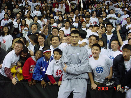 然而,令現(xiàn)場觀看比賽的華人球迷更為激動的是,比賽結(jié)束后,姚明在火箭隊新聞官尼爾森-路易斯的陪同下,來到了他們中間。在休斯頓姚明球迷俱樂部十幾位理事的精心組織下,姚明帶著勝利后的微笑,分四次先后與耐心坐等在觀眾席上的數(shù)千名球迷合影。這一歷史性場景后來多次被全球的體育報刊雜志登載出來。