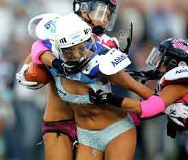 中新網(wǎng)5月19日電 據(jù)臺(tái)灣“今日新聞”報(bào)道,說(shuō)起娛樂與運(yùn)動(dòng)的結(jié)合,美國(guó)說(shuō)第一應(yīng)該沒人敢說(shuō)第二。例如劇本高潮迭起的美式摔角或是號(hào)稱結(jié)合籃球、足球、曲棍球和體操的美式激爆灌籃,都讓人印象深刻。然而對(duì)于男性觀眾而言,最“刺激”的莫過于內(nèi)衣美式足球聯(lián)盟。