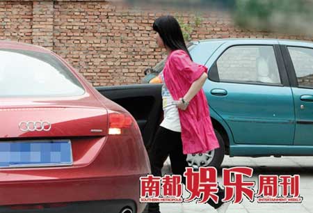 終于楊威有點(diǎn)不耐煩了,站起身來走進(jìn)了那排平房。記者發(fā)現(xiàn)在平房里有一家小型廣告公司,楊云好像在與該公司的工作人員用電腦制作一些材料。大約又過了20分鐘,楊威先出來啟動汽車,楊云拿著一張光碟和一些文件跟著快步走了出來。記者看到楊云穿著一件寬大的白色T恤,腹部微微隆起,孕相明顯,估計(jì)已經(jīng)有三四個月的身孕了。別看有孕在身,但楊云膚色紅潤,步履輕快,不愧是運(yùn)動員出身,20分鐘后楊威和楊云返回了公寓。