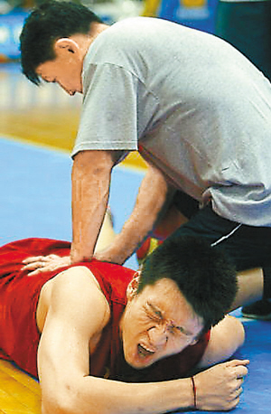 可惜樂極生悲,在一次投籃后,孫悅突然捂著大腿倒下,齜牙咧嘴看起來很痛苦,診斷結(jié)果是因為用力過猛,導致臀部抽筋。其實,與其說用力過猛,還不如說“秀”過了頭。