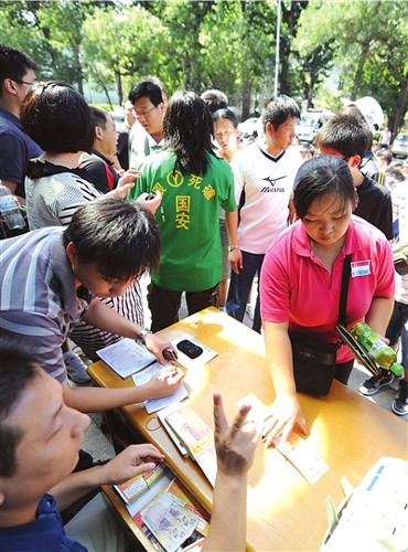 據(jù)球迷王先生介紹,他想要購買的是本月30日國安對陣魯能的比賽門票!瓣P系到國安今年能否在中超奪冠,作為十幾年的國安球迷,這場比賽我們必須去見證。”為買到門票,王先生昨天早上5點就到工體北門守候。當時排在他前面的人只有5個,按照當天該售票點發(fā)售500張票、每位球迷限買兩張票的情況,他覺得無論如何都能買上票。