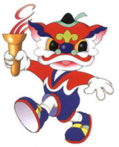 會徽:會徽中間豐滿,兩端漸細(xì)的曲線給人無限的延伸感,配合傾斜的線條,更顯奔騰飛躍之意。對比鮮明的紅、黃、藍三色,對視覺有強烈的沖擊力。造型灑脫地色勒出一個“9”,既直接傳達了九運會的信息,又宛如一位矯健、充滿活力、奮發(fā)向上的運動員,豪邁跨入新世紀(jì)。