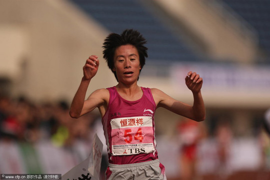 中新社北京十月十八日電 憑借終點(diǎn)前數(shù)百米的超強(qiáng)沖刺實(shí)力,中國(guó)女子選手白雪在十八日舉行的十一運(yùn)馬拉松比賽中蟬聯(lián)全運(yùn)會(huì)冠軍,雖然二小時(shí)三十四分四十四秒的奪冠成績(jī)對(duì)于這位世錦賽新科冠軍并不理想,比其最好成績(jī)慢了約十一分鐘,但激烈的比賽過(guò)程頗為扣人心弦。