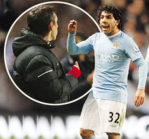 昨天,英格蘭聯(lián)賽杯半決賽首回合進(jìn)行了一場(chǎng)曼徹斯特同城德比,結(jié)果曼城在第17分鐘就先被對(duì)方隊(duì)長(zhǎng)吉格斯率先破門的不利形勢(shì)下,憑借前曼聯(lián)舊將、阿根廷國(guó)腳前鋒特維斯在第40分鐘的點(diǎn)球、第65分鐘的頭球,最終在主場(chǎng)以2:1險(xiǎn)勝曼聯(lián)。值得關(guān)注的是,綽號(hào)“野獸”的特維斯此番面對(duì)“拋棄”他的老東家紅魔曼聯(lián)首度進(jìn)球,而且還是梅開二度。不過,反咬紅魔快意復(fù)仇的“野獸”在進(jìn)球后帶有挑釁、示威意味的張狂慶祝動(dòng)作,卻引發(fā)了一場(chǎng)鬧劇。
