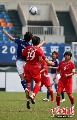 亞洲勁旅朝鮮隊開場就失利,被判罰點(diǎn)球,日本隊7號前鋒安藤梢主罰為日本隊奪得第一分。隨后,9號前衛(wèi)永里優(yōu)季再進(jìn)一球,最后朝鮮隊以1:2負(fù)于日本隊。另一場緬甸0:2負(fù)于泰國隊。