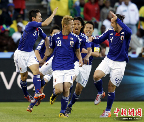 中新網(wǎng)6月14日電 北京時(shí)間22點(diǎn)整,南非世界杯E組日本與喀麥隆隊(duì)的比賽打響,雙方在布隆方丹的自由州球場展開爭奪。最終經(jīng)過90分鐘激戰(zhàn),日本隊(duì)?wèi){借本田圭佑的進(jìn)球1-0擊敗喀麥隆,在小組出線之路上占得先機(jī)。