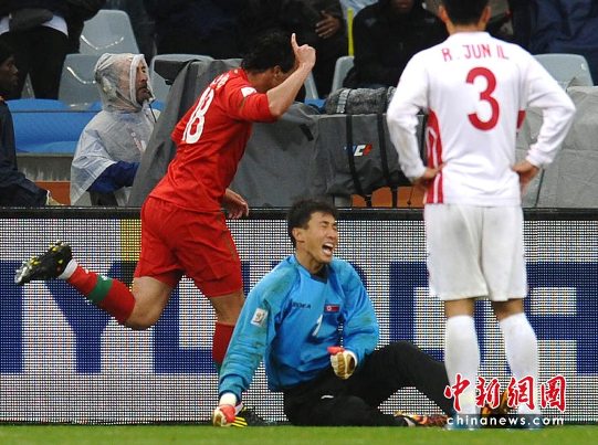 智利主裁判波索向樸哲鎮(zhèn)亮出首張黃牌,這也是朝鮮隊本屆世界杯首張黃牌。第35分鐘,朝鮮中衛(wèi)解圍不遠,梅雷萊斯在門前10米處右腳抽射偏出左門柱。第39分鐘,門德斯鏟倒樸南哲,被黃牌警告,洪映早在門前24米處任意球打在人情上。第42分鐘,C羅左路突破禁區(qū)前沿左腳抽射偏出遠門柱。