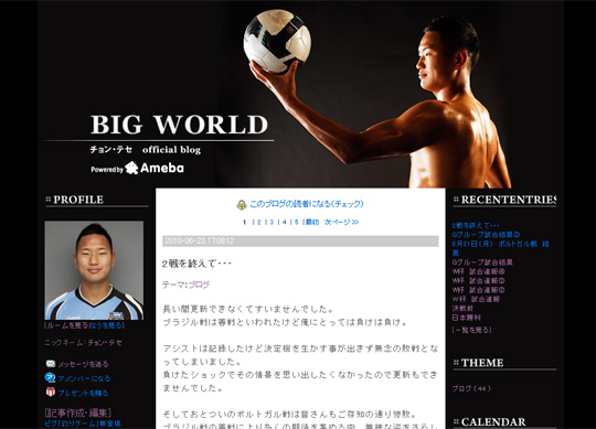中新網(wǎng)6月25日電 據(jù)韓國(guó)媒體JES報(bào)道,“人民魯尼”鄭大世(27歲)在自己的博客上留下了自己對(duì)于慘敗葡萄牙的感受。6月23日下午,鄭大世在博客上刊登了題為《結(jié)束第二戰(zhàn)》的文章。