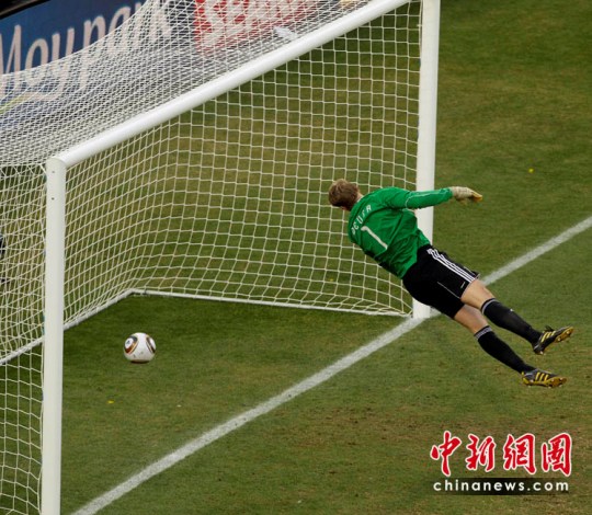 德國隊在上半場很快就以2比0領(lǐng)先,但英格蘭隊隨后發(fā)起絕地反擊,在第37分鐘和38分鐘連入兩球,但后一個由蘭帕德遠射打入的一球,在擊中橫梁后越過了球門線,不過主裁判拉里昂達卻在征詢了邊裁的意見后,判此球無效。