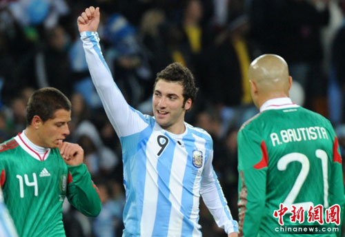 中新網(wǎng)6月28日電 今天凌晨2:30,南非世界杯1/8決賽再賽一場,阿根廷隊在約翰內(nèi)斯堡的足球城球場迎來了墨西哥隊。憑借特維斯一個明顯越位進(jìn)球首開紀(jì)錄,隨后伊瓜因和特維斯各進(jìn)一球,以3-1擊敗墨西哥,晉級八強(qiáng)。