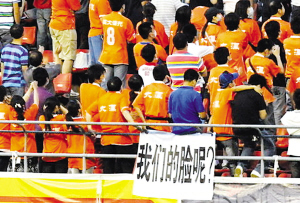 球迷無聲的抗議帶給魯能巨大的壓力,更大的尷尬在比賽結(jié)束后到來。0比0,魯能成為本輪中超惟一一支沒能在主場贏球的球隊,這場平局讓他們把中超榜首位置讓給了北京國安隊。比賽結(jié)束后,賽場上的球迷出聲了,“下課……”