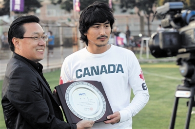 昨天下午,在大連隊訓(xùn)練時,來自韓國的KSB電視臺采訪組,一直在場邊拍攝安貞煥的訓(xùn)練畫面。訓(xùn)練結(jié)束后,他們邀請安貞煥做了一個訪談節(jié)目,介紹安貞煥在大連的足球生活。韓國鐵道部旗下的一家鐵路建筑公司,邀請安貞煥擔(dān)任他們的形象大使,采訪組代表在訓(xùn)練場邊向安貞煥贈送了“形象大使”的紀念獎杯。