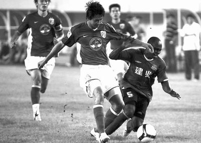 兩員“傷兵”在休息兩周不到的時間再度登場,據(jù)說趙鵬在賽前還打了針封閉。唐堯東派出的陣容是目前最強:門將曾誠,后衛(wèi)趙鵬、宋泰林、張璐、李昭楠,中場姜坤無法出戰(zhàn),派出陸峰、何濱、徐洋和王博,鋒線是“黑白雙煞”奧利薩德貝和內(nèi)托。