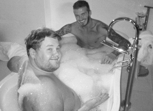 貝克漢姆手術(shù)成功,英國媒體心情也不錯!睹咳甄R報》昨天發(fā)了一張貝克漢姆和英國喜劇明星科登一起洗“鴛鴦浴”的圖片,這張照片是幾周前在米蘭拍的,當(dāng)時兩人都是為BBC的一個慈善短片客串。兩人在浴缸里一共呆了3分鐘,貝克漢姆還對科登身體的多個部位點頭贊賞。這段畫面被BBC稱為這段慈善短片中“最有喜劇效果的鏡頭”。