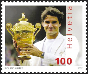 2007年4月,打破康納斯連續(xù)160周排名第一的世界紀(jì)錄之后,費(fèi)德勒家鄉(xiāng)的瑞士郵政局就發(fā)行了一套以“費(fèi)德勒”名字命名的郵票,嘉獎他為國家所取得的榮譽(yù),他也因此成為首位在世就“登上”瑞士郵票的人。