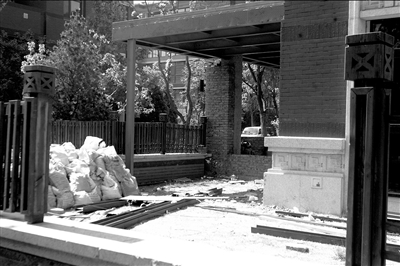 據(jù)小區(qū)物業(yè)的一名負責人介紹,2008年,前乒乓球世界冠軍劉偉在該小區(qū)尚園×號樓×單元1028室辦理入住手續(xù),并開始進行室內(nèi)裝修。今年4月,幾名工人來到1028室,開始對外墻進行整修。物業(yè)見此這種情況前去詢問,得知業(yè)主要在緊鄰樓層的小花園內(nèi)搭建一座20多平方米的二層建筑。他們立即和業(yè)主進行協(xié)商,但沒有結(jié)果。本月14日,又有一批工人過來,不聽勸阻繼續(xù)施工。