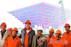 世博會(huì)中國館工地 劉翔與父親、教練一同“觸電”