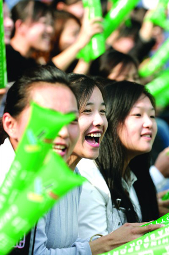 “拉拉隊(duì)志愿者并不是和外界想像的那樣一定要漂亮,關(guān)鍵是要有親和力!睆堁蠼榻B說,因?yàn)樗麄兊闹饕氊?zé)就是要帶動(dòng)現(xiàn)場(chǎng)的氣氛,這需要觀眾的認(rèn)可,如果讓一個(gè)不被觀眾接受的志愿者去引領(lǐng),那就很難達(dá)到理想的效果。為了達(dá)到這個(gè)要求,隊(duì)員們?cè)谂嘤?xùn)期間每天都要對(duì)著鏡子微笑兩個(gè)小時(shí)以上。