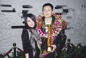 昨日下午,第14屆LG世界棋王賽冠軍孔杰從韓國(guó)首爾返回北京,孔杰的媽媽與體育總局棋牌中心主任劉思明、北京棋院副院長(zhǎng)譚炎午等領(lǐng)導(dǎo)早早來到機(jī)場(chǎng)迎接。女友陳小勻也來到機(jī)場(chǎng),與載譽(yù)歸來的男友小秀了一把恩愛。
