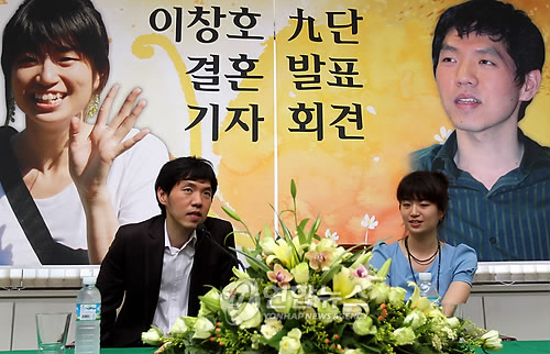 當(dāng)天李昌鎬同李度侖一起出席記者會。他先開口說:“由于歲數(shù)比較大,所以本來認(rèn)為會晚婚,有幸遇到了好對象(得以結(jié)婚)!薄敖Y(jié)了婚后,會更加互相愛惜和照顧!