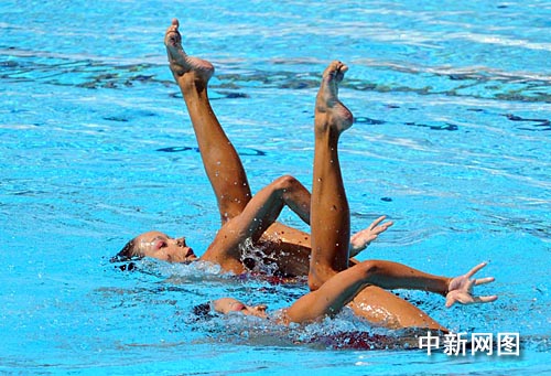 中新網(wǎng)羅馬七月二十一日電 (記者 宋方燦)“世界上最美的腿”二十一日在游泳世錦賽花樣游泳賽場上大放異彩。蔣文文/蔣婷婷這對雙胞胎姐妹在雙人技術(shù)自選的比賽中里表現(xiàn)出色,雖然遭遇個(gè)別裁判的低分“照顧”,但仍輕取一枚銅牌。俄羅斯組合奪得金牌,西班牙選手繼續(xù)名列第二。