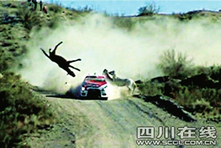 阿根廷賽車(chē)手費(fèi)·比亞格拉正在阿根廷南部參加汽車(chē)?yán)。賽?chē)行駛到內(nèi)格羅河省的羅卡將軍城附近時(shí),遇到三匹馬正在穿越公路。比亞格拉只看到其中兩匹,等發(fā)現(xiàn)第三匹馬時(shí)已經(jīng)來(lái)不及躲避了,賽車(chē)和馬猛烈相撞后將馬撞得凌空而起。這起事故造成這輛三菱賽車(chē)的前半部分損傷不輕,但是比亞格拉僅僅因?yàn)槭鹿实⒄`了30秒鐘,隨后駕駛著賽車(chē)?yán)^續(xù)前進(jìn),并且完成了當(dāng)天的全程比賽。(新華社)