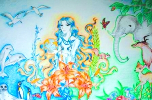 排球美女趙蕊蕊扣球厲害,還畫得一手好畫。在一次北京海洋館舉辦的環(huán)保作品比賽中,她的一幅作品獲得二等獎(jiǎng)。趙蕊蕊在博客里公布了這幅作品,她解釋說:“我想表達(dá)的是地球母親手捧地球,左邊是海洋世界,右邊是陸地世界,而她的頭頂是一片天空,因?yàn)橛辛诉@一切才構(gòu)成和諧統(tǒng)一的世界!