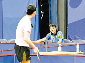 過(guò)了一會(huì)兒,王皓由隊(duì)醫(yī)進(jìn)行按摩恢復(fù),但他的眼睛一直盯著彭陸洋。彭陸洋不時(shí)走到場(chǎng)邊撿球,每次只要走到與王皓相近的場(chǎng)地角落,王皓基本上都要跟她說(shuō)上幾句:有時(shí)是開玩笑,王皓說(shuō)得眉開眼笑,彭陸洋的臉上比較平靜,回過(guò)頭來(lái)繼續(xù)打球;有時(shí)候是王皓給彭陸洋提一些建議,彭陸洋點(diǎn)點(diǎn)頭。趁著彭陸洋場(chǎng)邊休息的時(shí)候,王皓走上前來(lái),對(duì)彭陸洋交代了幾句。