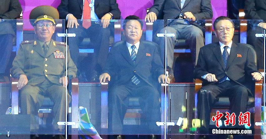 第17屆亞運(yùn)會(huì)于4日晚在仁川主體育場舉行閉幕式,朝鮮高級(jí)代表團(tuán)成員出席。當(dāng)?shù)貢r(shí)間晚8時(shí)10分許,當(dāng)朝鮮運(yùn)動(dòng)員入場時(shí), 黃炳誓等人起立向運(yùn)動(dòng)員揮手致意,體育場內(nèi)掌聲響起。