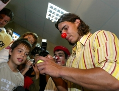 一向熱心公益的納達(dá)爾,很喜歡與孩子們玩樂。四年前,納達(dá)爾就在馬洛卡杜雷塔醫(yī)院扮作小丑安慰受到病痛折磨的孩子們。西班牙RTVE電視臺稱,這是孩子們令人難忘的經(jīng)歷,“從他們驚訝的面部表情當(dāng)中就可以看出,對于世界第一的網(wǎng)球選手能親自來給他們講童話,是多么難以置信。”其實(shí),一向喜歡看動畫、玩PS2游戲的納達(dá)爾在場外就是個(gè)長不大的孩子。這個(gè)漫畫《七龍珠》的忠實(shí)擁躉,出外比賽旅行時(shí)也總帶著《七龍珠》的DVD,所以講起童話來也頭頭是道!捌鋵(shí)我不大會唱歌,相反為孩子們將故事是件不錯(cuò)的工作!奔{達(dá)爾坦言。