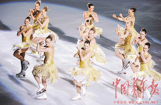 2月25日,獲得列隊(duì)滑亞軍的芬蘭隊(duì)在表演中。