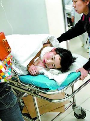 4日,孔雪所在的一組在比賽中發(fā)生了碰撞,她和另外兩名選手相撞后摔倒,另一名選手的冰刀割破了她的頸部右側(cè),當(dāng)時就流了不少血?籽┝⒓幢凰偷礁浇那噌t(yī)附院治療。據(jù)醫(yī)生介紹,她的傷口有接近無名指那么長,而且劃得很深,幸好沒傷到血管。