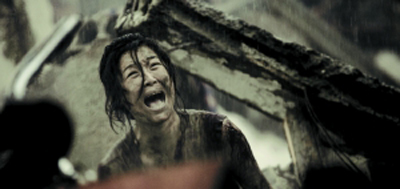 以唐山為題,觀眾自然也關(guān)注地震戲拍得怎么樣,就特技而言應(yīng)該說(shuō)馮小剛交出了一篇不錯(cuò)的答卷。影片開篇的唐山大地震場(chǎng)面拍得驚心動(dòng)魄,3分鐘內(nèi),觀眾剛體會(huì)到四口之家的溫馨,馬上就見證了地獄般的滅城,地陷、屋塌和震后的哀鴻遍野,這段戲結(jié)合置景搭建和電腦特效,有小細(xì)節(jié)的真實(shí)質(zhì)感,也有大場(chǎng)面的壯觀殘酷,拿出來(lái)跟《2012》比都不算失禮。此段戲后,徐帆一句凄厲的“老天爺,你個(gè)王八蛋!”成為觀眾的首個(gè)情緒迸發(fā)點(diǎn),場(chǎng)內(nèi)抽泣聲此起彼伏。