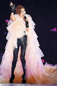 一開(kāi)場(chǎng),Sammi穿紅黑軍裝、頭戴夸張帽飾,站在噴火飛碟上空降舞臺(tái),以舞曲《天衣無(wú)縫》火速炒熱氣氛,10年沒(méi)在臺(tái)北開(kāi)唱,她大展親民挑逗粉絲,頻問(wèn):“我的華語(yǔ)是不是進(jìn)步了?還有一點(diǎn)點(diǎn)臺(tái)味!薄ⅰ拔疫是那么漂亮、fit(結(jié)實(shí))對(duì)吧?”接著她換上水鉆流蘇裝,連唱2首經(jīng)典抒情歌《承諾》、《值得》,將時(shí)光拉回剛來(lái)臺(tái)發(fā)片的1996年,全場(chǎng)螢光棒譜成一片粉紅海,氣氛感人。