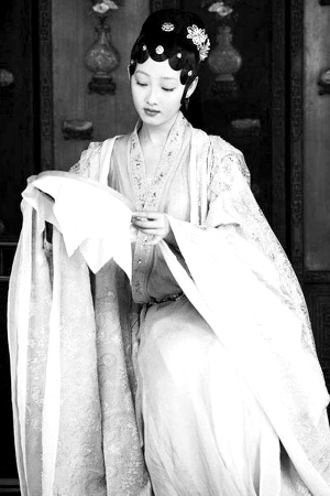 看著黛玉、寶釵、秦可卿等人的發(fā)型,怎么看怎么像徐克拍的《青蛇》,京劇里的青衣、花旦都是這么貼的頭發(fā),舞臺形式感很濃,據(jù)說這叫“貼片銅錢裝”,著實讓人驚艷。估計觀眾初一看肯定受不了,再一看還是受不了,最后受不了也得受了。不知道少紅導演是怎么考慮的,也說不定這會在時尚界掀起一股潮流,以后子怡妹妹、冰冰姐再去好萊塢、戛納作秀,來個“貼片裝”,肯定會被老外驚為天人,引起一片“My God(我的天)”之聲。