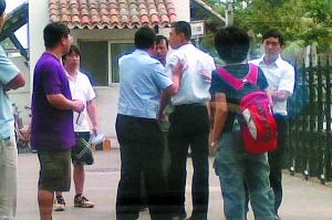 郭家的別墅外仍舊守衛(wèi)森嚴(yán)。記者剛到后院,就被保安帶離。記者離開時,除了柵欄已被拆,后院地上的木條小路依然完好,涼亭也尚未拆除。