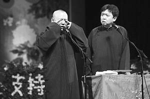 演出在當(dāng)晚7:30左右開場,郭德綱和于謙都身穿傳統(tǒng)長衫出場,笑容滿面,開場白是:“感謝在座的衣食父母!比珗稣坡曧懫。在當(dāng)晚演出中,郭德綱和于謙一共說了四段經(jīng)典作品,并且在觀眾一再要求下,返場了五次。郭德綱一向擅長拿真實(shí)事件“砸掛”。在返場中,郭德綱就用“保羅”和于謙父親串聯(lián)了起來,讓現(xiàn)場笑聲不止。除了郭德綱和于謙二人的表演,在近3小時的整場演出中,還有多名弟子上臺演出,但并無知名度較高的弟子出現(xiàn)。演出結(jié)束后,一群“綱絲”仍舊不愿離場,留在門口想與郭德綱合影簽名,并且打出橫幅支持郭德綱。面對觀眾如此熱情,郭德綱也是感慨道,“我能力有限,就會說個相聲,只要大家喜歡,我們就愿意給大家?guī)砜鞓。”?jù)了解,本場演出所有低票價已經(jīng)在一周之前全部售出,而最高門票也是所剩無幾。在離開場還有一個鐘頭的時候,黃牛黨都聚集在售票處,但并不是出售門票,而是收門票。當(dāng)記者向黃牛黨打聽票價時,得到的回答只有“沒票,你有票賣嗎?”(王少文)