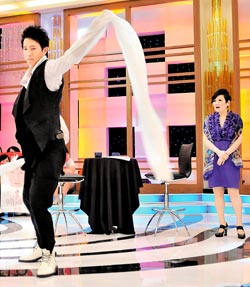 對(duì)于當(dāng)場(chǎng)被夸講話(huà)溫柔,外表看不出強(qiáng)勢(shì),更被懷疑從沒(méi)出口罵人,韓庚立馬否認(rèn)說(shuō):“當(dāng)然有!男孩子都罵過(guò)人!”現(xiàn)場(chǎng)張小燕更故意踩臟韓庚的白皮鞋,想逼他罵人,但是韓庚在大聲喊了幾聲后竟蹲下擦鞋,溫柔的說(shuō):“(鞋子)臟了!”讓張小燕相當(dāng)失望。