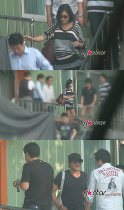 即將臨產(chǎn)的高素榮和丈夫張東健一同出入廣告拍攝現(xiàn)場(chǎng)。