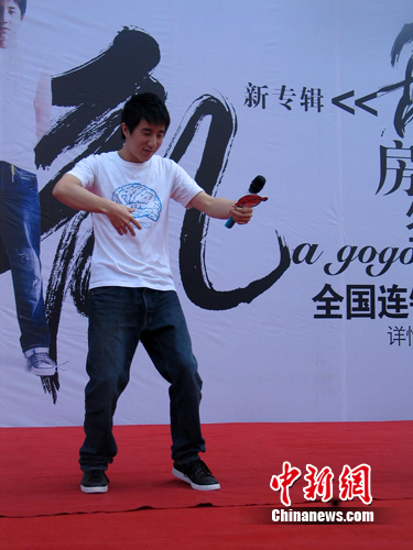 中新網(wǎng)西安8月28日電(記者 冽瑋)8月28日下午,香港藝人房祖名帶著個(gè)人全新創(chuàng)作專輯《亂》來(lái)到西安,粉絲們?yōu)榱四慷门枷竦娘L(fēng)采,早早等候在簽售現(xiàn)場(chǎng)。房祖名在臺(tái)上大“秀”邁克·杰克遜的舞蹈,也令眾多粉絲大飽眼福。