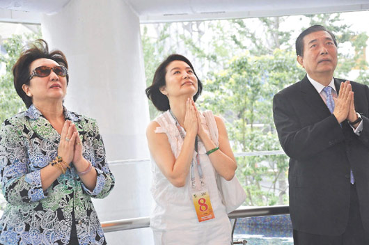 上海世博會開幕以來,臺灣館備受各界稱贊,昨天更出現(xiàn)2位來自臺灣的大明星,久違熒光幕的林青霞,在昔日影壇好友女星楊惠姍、導(dǎo)演張毅陪同下,參觀臺灣館,吸引場內(nèi)場外廣大粉絲的目光。