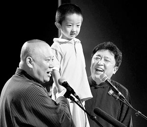 當晚的演出是在7點20分正式開始的,一開場,便是德云社的眾人齊亮相。而當晚,郭德綱和于謙到壓軸時才正式登場,表演了傳統相聲《賣布頭》。