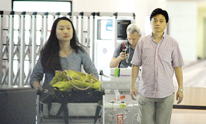 崔永元曾被傳離婚是因?yàn)榕砉。近日,記者在機(jī)場偶遇崔永元與這位緋聞女主角親密回京的一幕。當(dāng)天晚上10點(diǎn)左右,身穿粉色襯衣的崔永元出現(xiàn)在記者面前,只見他帶著那招牌式的“崔氏笑容”走出了安檢口,還時(shí)不時(shí)向后張望著什么,沒過一會兒就與“潛伏”在人群中甘當(dāng)“行李搬運(yùn)工”的女子并肩而行。